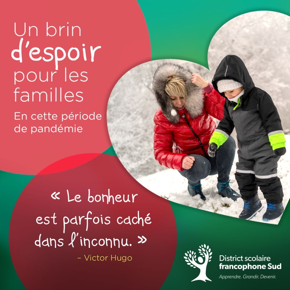 En cette période difficile pour les familles, il faut se rappeler qu’un jour, la pandémie fera partie de notre histoire. #UnBrinDSFS